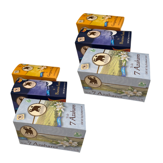 Pack Té Haathee, Línea Equilibrio, Bueno Sueños, Garganta Dulce y Siete Azahares (6 cajas con 25 sobres c/u)