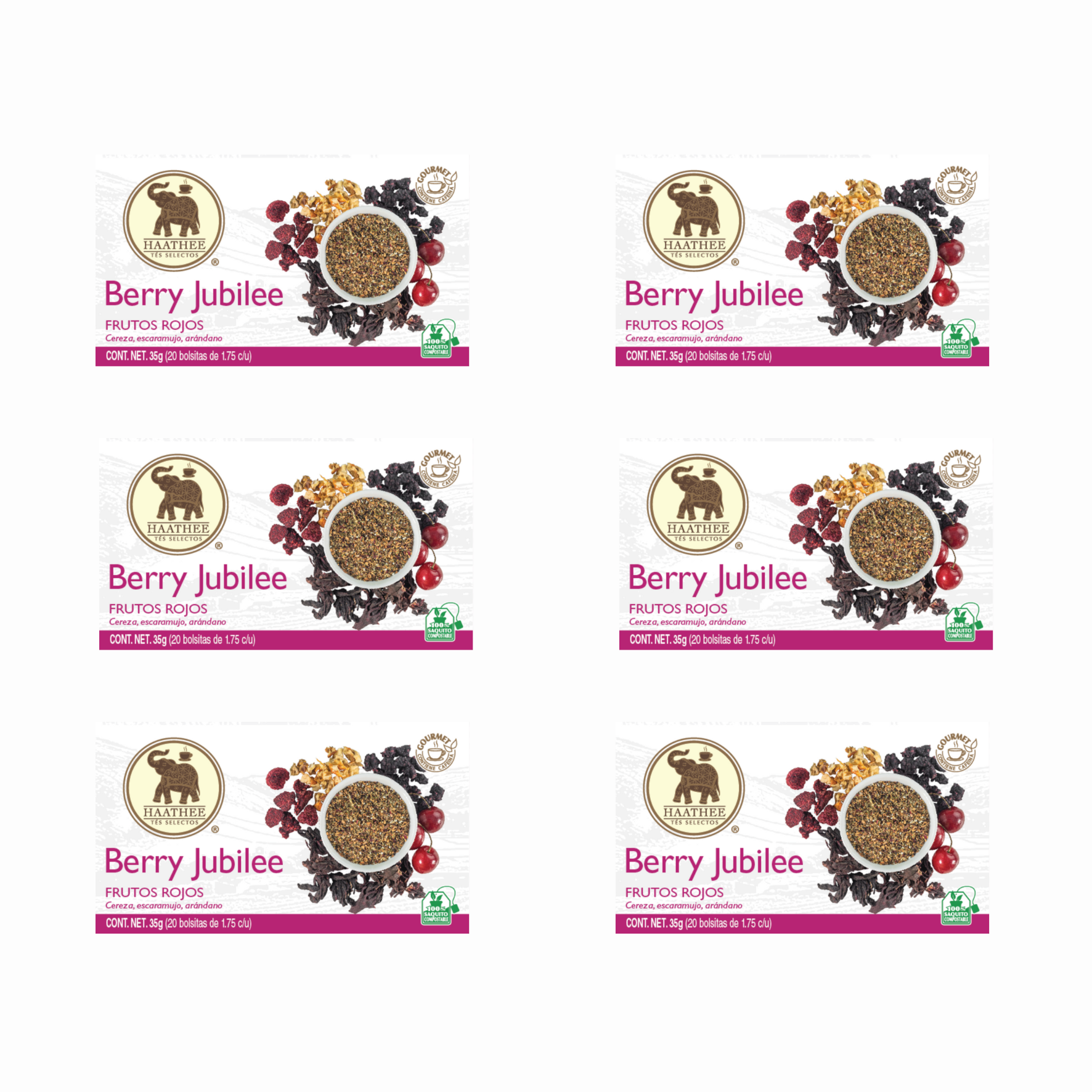 - Berry Jubilee: Té de frutos rojos con arándano, cereza, té negro, escaramujo y cereza.