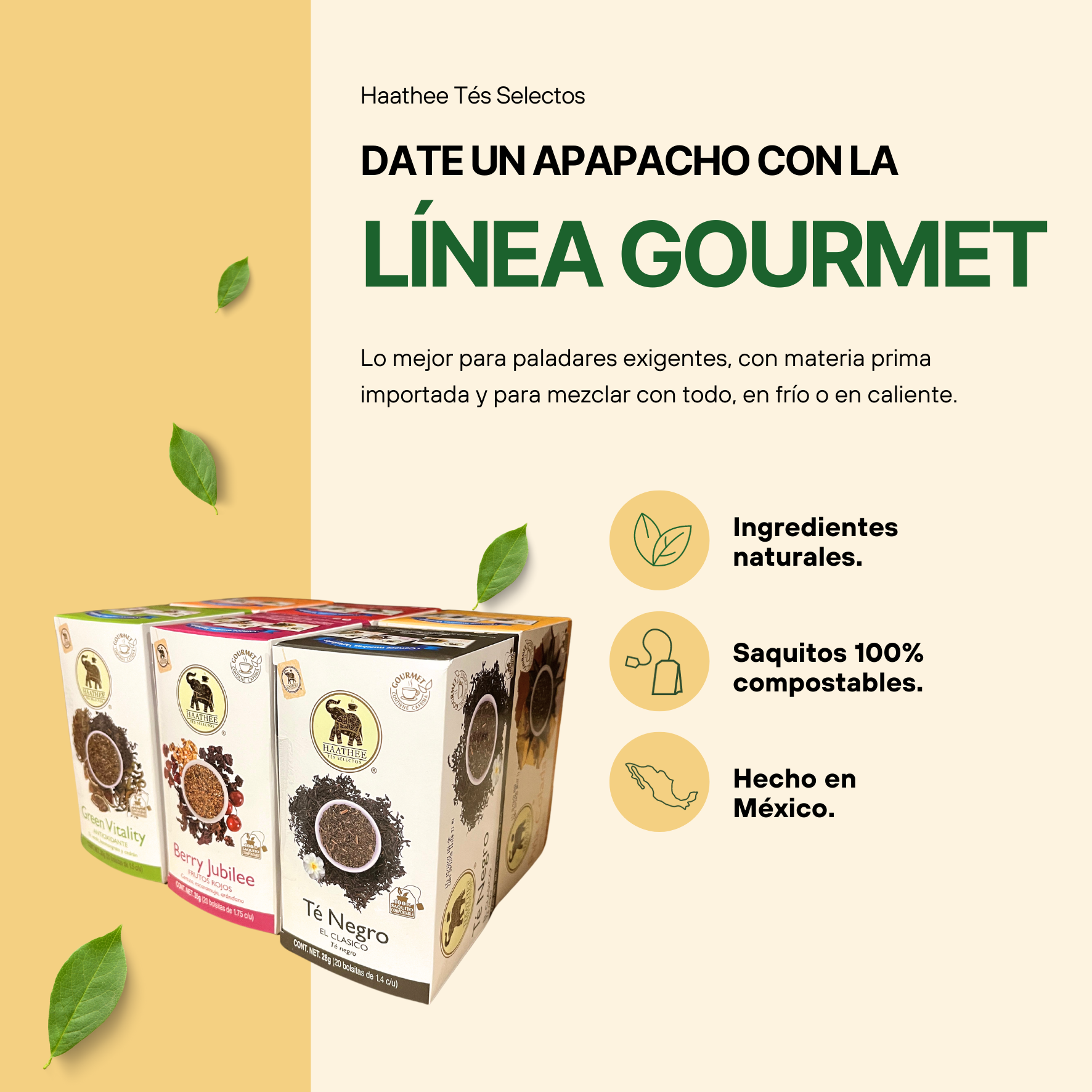 ¿Quieres probar lo mejor de nuestro catálogo? La nueva Línea Gourmet de Haathee Tés Selectos trae nuestras fórmulas premium, con materia prima importada. Puedes tomarlas en frío, caliente, con leche, tapioca y/o el endulzante que quieras. También puedes usarlas para hacer extractos de coctelería y aguas de sabores para un día caluroso.