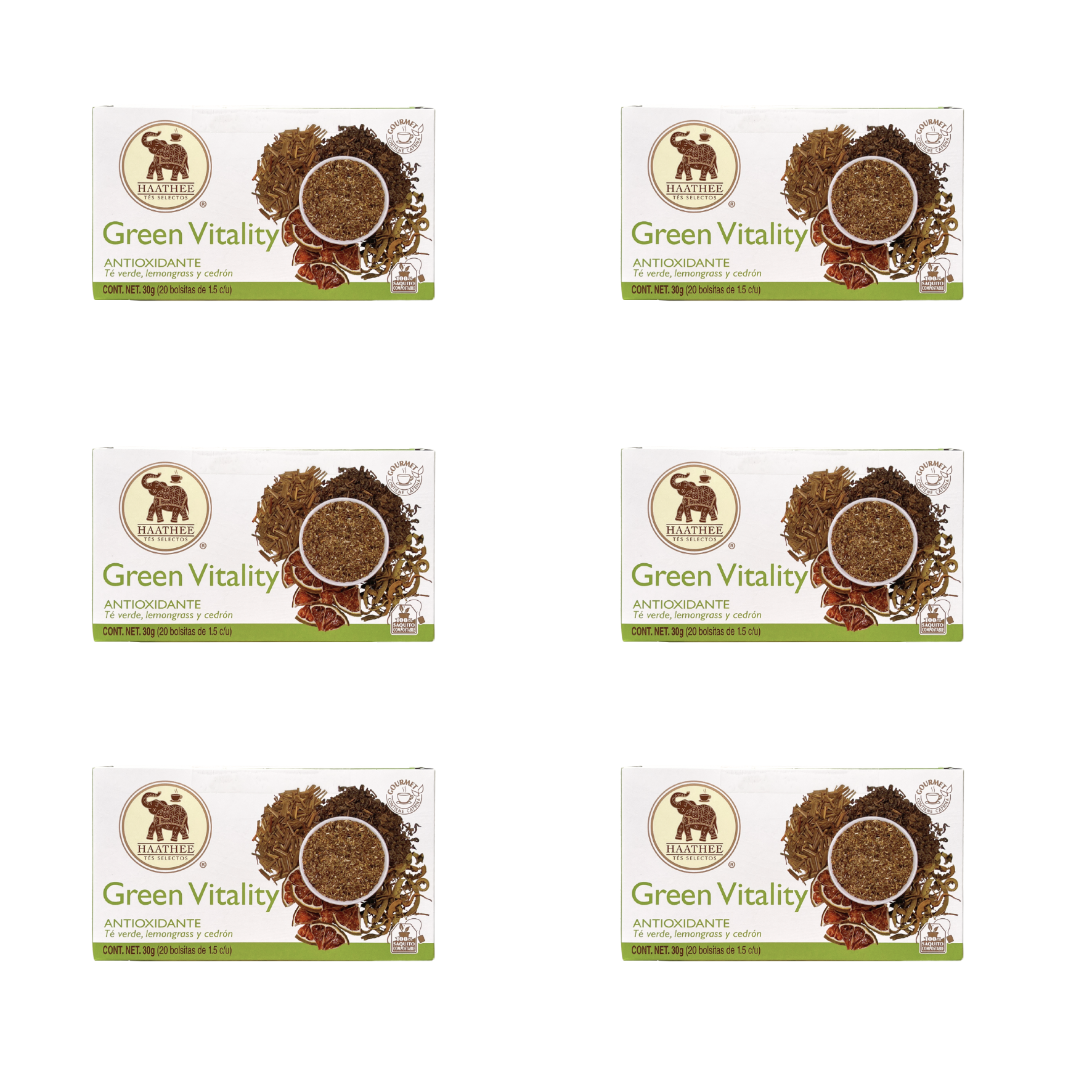 - Green Vitality: Mezcla de té verde con lima y cedrón.
